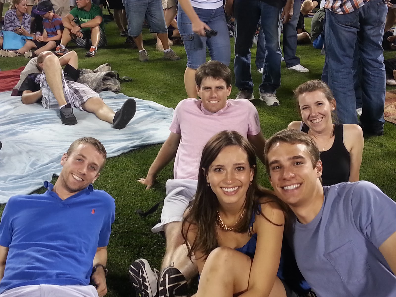 - 7/4: went to a Rockies game with Will and his roommate Nick (another T'14, they're on the same hockey team). We joined up with a recently graduated T'13 who's in Denver, and a college friend of ours who works in the city. Afterwards, our outfield section went down onto the field (first time touching the grass on an MLB field, pretty awesome!) to watch the fireworks go up over the Rockies scoreboard.